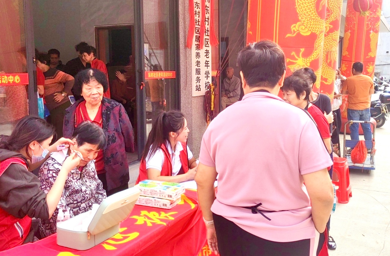 东村社区长者食堂内热闹非凡,处处洋溢着欢乐祥和的节日氛围。为了让老年人们度过一个充实有趣的重阳节,活动现场精心设置了多样互动环节与志愿服务项目。套圈圈游戏区前,老人们排着队,手持圈圈瞄准目标,不时传来阵阵欢笑声,大家在轻松的游戏中收获了快乐;健康咨询与口腔检查服务区则人气十足,来自专业机构的工作人员耐心细致地为老人们解答健康疑问,为他们进行口腔检查,并根据检查结果给出针对性的健康建议,让老人们在家门口就能享受到专业的健康服务。