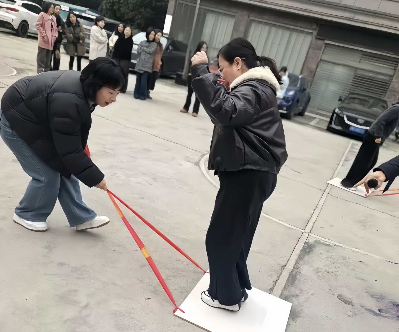 健康讲座结束后,趣味文体活动轮番上演,现场气氛迅速升温。青蛙跳接力项目中,参赛女职工两人一组、协同配合,手握绳索、脚踩跳板,在跳跃中展现默契,在协作中增进情谊,清脆的笑声与加油声交织在一起,充分彰显了活动的趣味性与参与性。